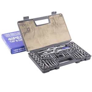 86-Piece Master Tap and Hex Die Set, Premium Titanium Coating | SAE Size #4 to 5/8”, Metric Size M3 to M16 | For All Coarse, Fine, Pipe Threads | Complete with Holders, Stocks, Gauges and Metal Case